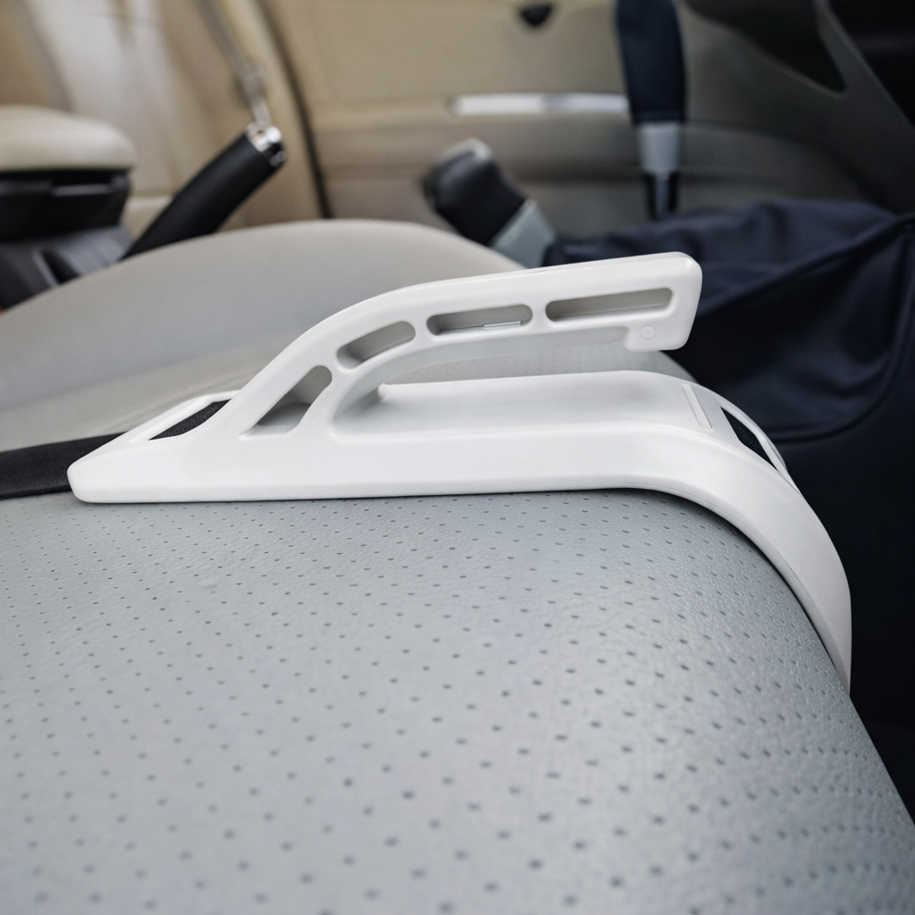 Notre ceinture de sécurité grossesse redirige intelligemment la sangle sous l’abdomen, là où elle est réellement sûre.