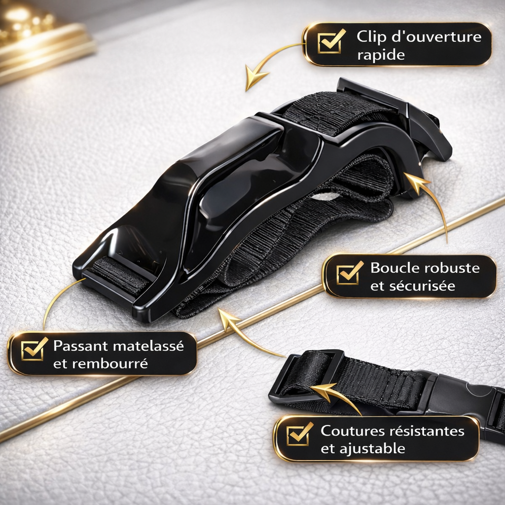 - Sangle renforcée avec boucle sécurisée